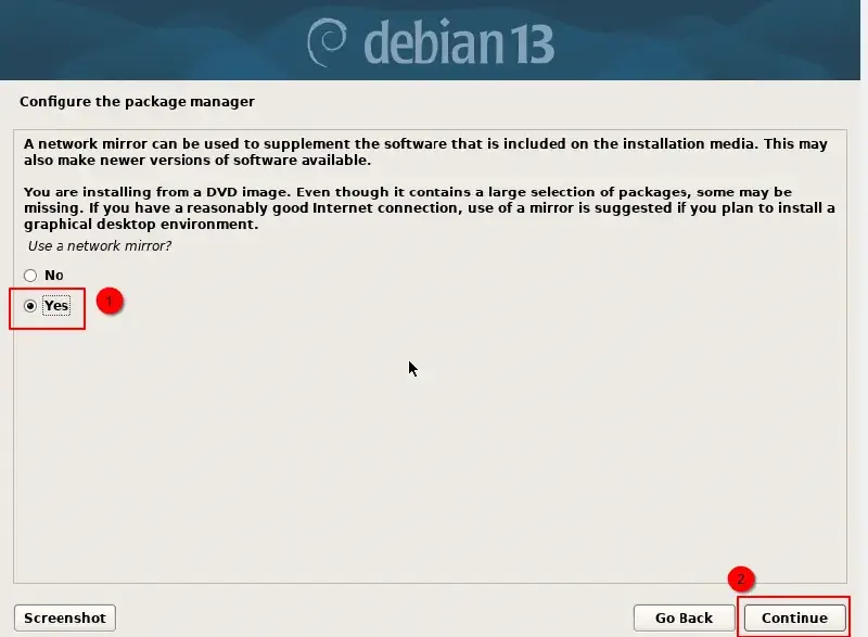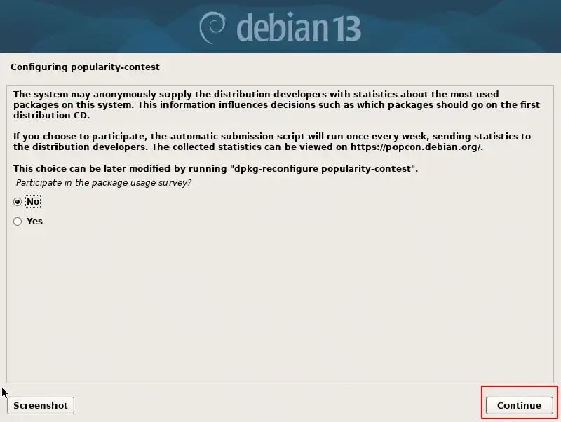 The package manager is a place from where you can get continuously updated and the latest packages for your system. It is maintained by Debian and other open-source supporting users. Select “Yes” to configure.