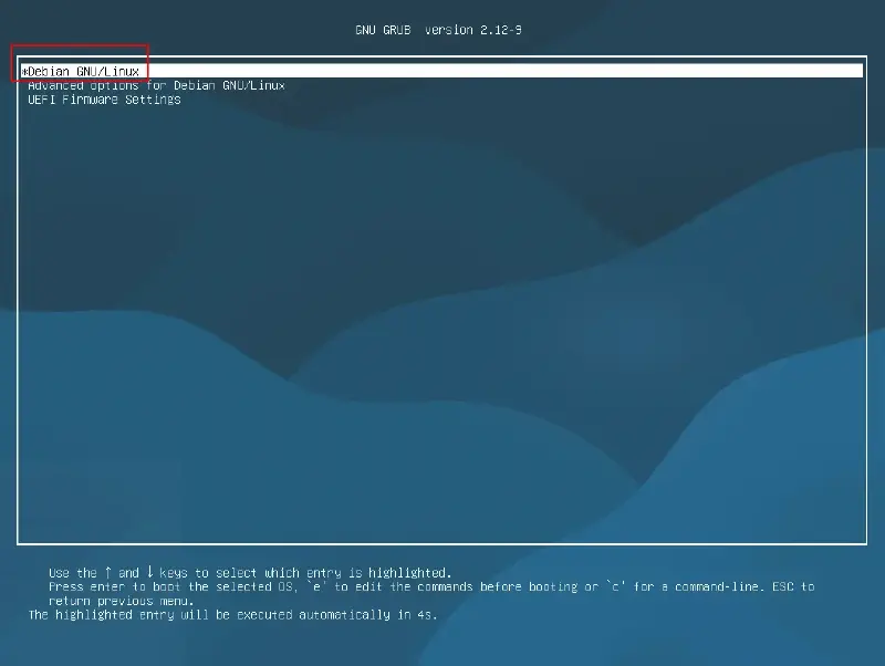 Post reboot, on the GRUB menu, choose Debian GNU/Linux.