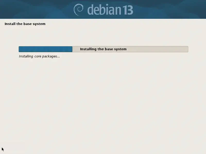The installer will set up the base Debian system automatically. No input required at this stage. Let it download and install all the core packages needed for OS functioning.